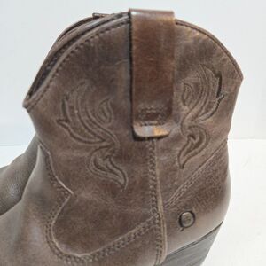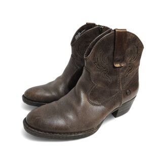 Born Riven Womens Brown Leather Ankle Boots Size 8/39 Western Cowboy Embroidered