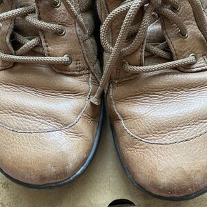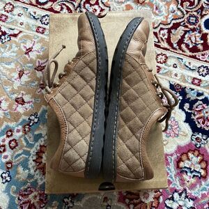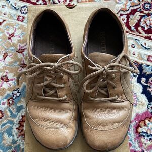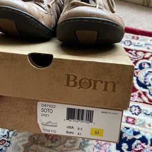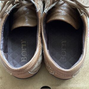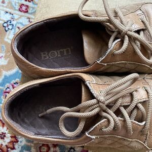 Born SOTO Brown Leather Suede Casual Quilted Lace up Sneakers Shoes. Size: 9.5. Color: stone/ light brown. Fair used condition. Have some wear - see photos closely. Need some leather cleaning - selling as is. Very comfortable. Perfect for fall. Leather upper & linings. Balance man made materials. Smoke free & pet free house.