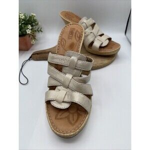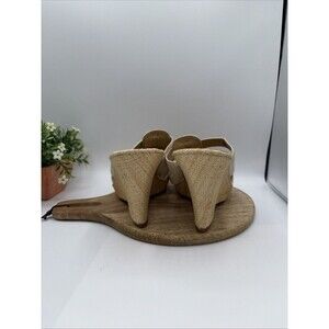 Born Sandals Tan Leather Woven Wedge Block Heel Slip-on Cross Strap Women Sz 9