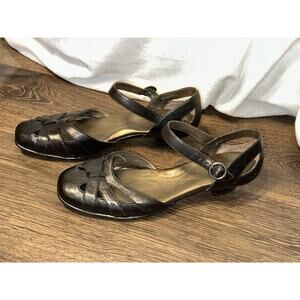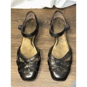 Born Sandals Womens 10M Strappy Kitten Heel Sandals Black Leather