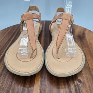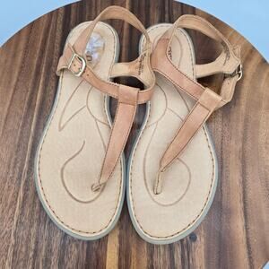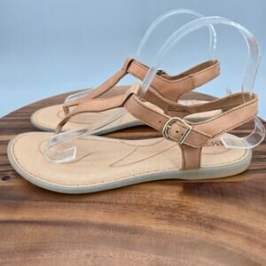 Born Sandals Women's 8 M Brown Leather Aswan Thong Comfort Buckle T Strap Flat