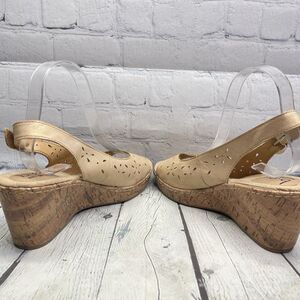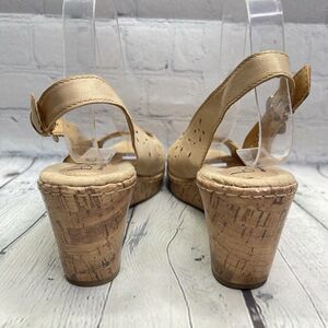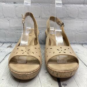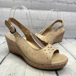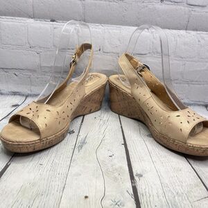Born Sandals Womens Size 9M Beige Tan Eyelet Slingback Leather Wedge Boho Beach