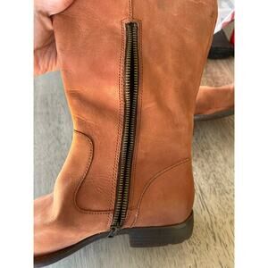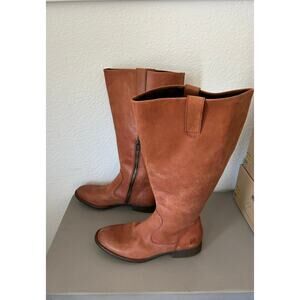 These boots are gorgeous. They are the Born Shaunie Italian Leather tall boots in cognac. They feature a soft hand-finished Italian leather upper. Handcrafted construction. The interior is a breathable soft fabric suede lining. The footbed is a soft footbed and has added foam for comfort. Inner zipper for ease in taking on and off. High traction lightweight rubber outsoles. There are a couple of blemishes, but still in great condition. New without box.