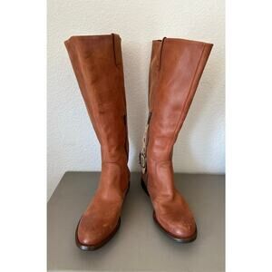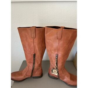 Born Shaunie Cognac Italian Leather Riding Boot Wide Calf - 7 1/2