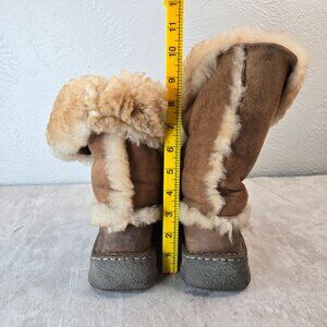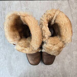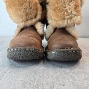 Born Shearling Boots Womens Sz 7 Brown Leather Fur Lined Lace Up Winter Booties