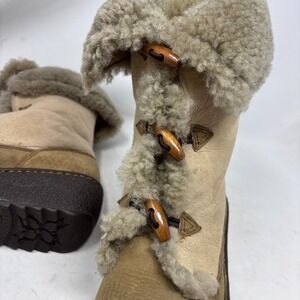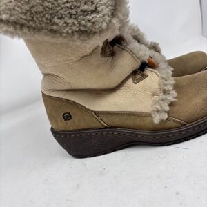 Born Shearling Wedge Boot Size 7.5 Tan Suede Leather Toggle Close Winter