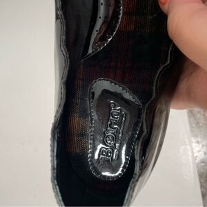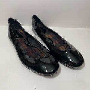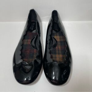 Gently worn women’s size 11 born black shiny leather scalloped edge round toe flats. Please review all photos for any signs of wear-pictured as is. Disclaimer: Any items with any wear/staining has not been treated, and unsure of ability to remove/treat condition. Comes from a smoke free home, bundle with other items to save & minimize shipping cost.