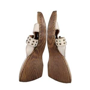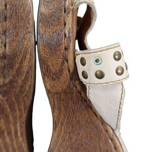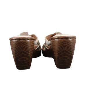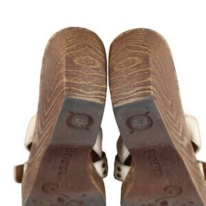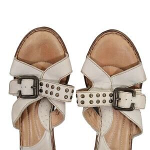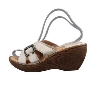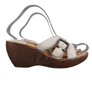 Used Born Shoes Women 8 Sandal Slide Wedge Leather Fashion Comfort Buckle Strap White