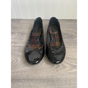 Born Shoes Womens 9 M Slip On Ballet Flats Black Leather Casual Bow Logo Shiny