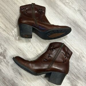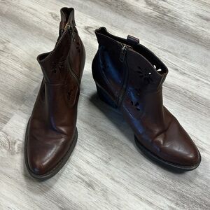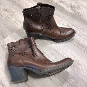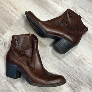 Born Shoes Women’s Brown Leather Laser Cut Zip Short Boots Style D34116 / Sz 10