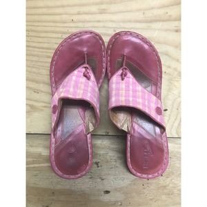Born Shoes Womens Sandals Sz 8 Drilles Espadrilles Pink Check Print Wedge
