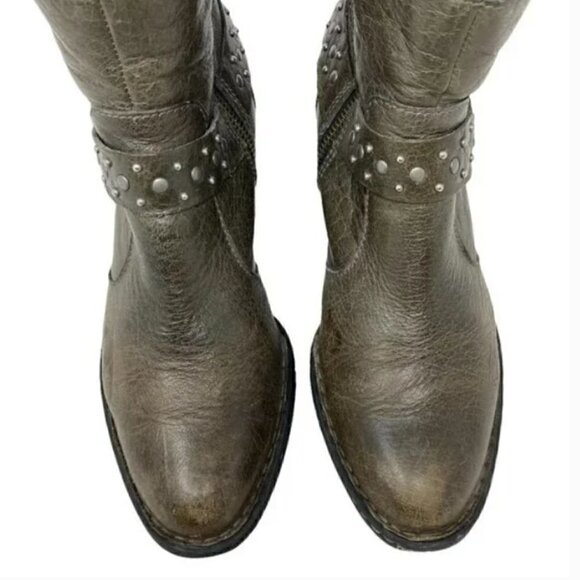 Born Slater Studded Distressed Leather Ankle Boots - Size 6