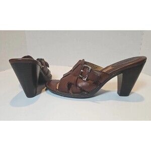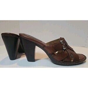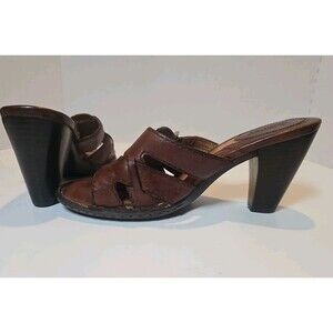 These Born slides are a stylish pair of women's shoes in a size 8 medium. They feature a slip-on closure, high heel height, and are crafted from brown leather. Perfect for a casual or dressy outfit, these shoes are designed for women and have a medium width. The Born brand ensures quality and comfort, making these slides a versatile addition to any wardrobe.