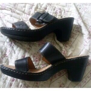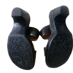 Born Slides Leather Heels Boho Women's Sz 7/38 Black/Brown Read