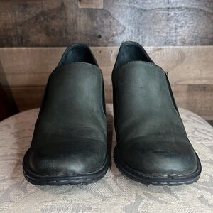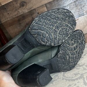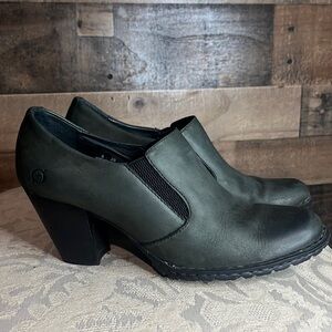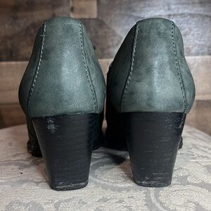 Born Slip On Mule Block Heel Comfort Shoe Green/Gray Leather Slip On 8 Women