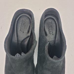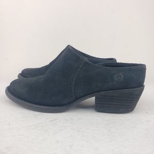 Born Starr Mule Clog Bootie Block Heel Black Suede Womens 6.5