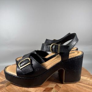 Born Strappy Platform Sandals Browyn Women's Size 9 Black Leather