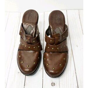 Born Strappy Studded Mule Heels Women size 10 Brown Leather