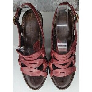 Born Strappy Wedge Sandals Open Toe Distressed Red Leather Sling back Women's EU 39/ US 9.5.