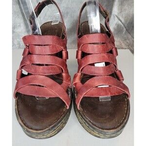 Born Strappy Wedge Sandals Open Toe Distressed Red Leather Sling Women's 39/US 8