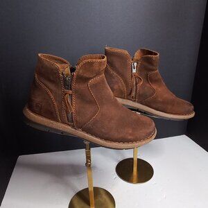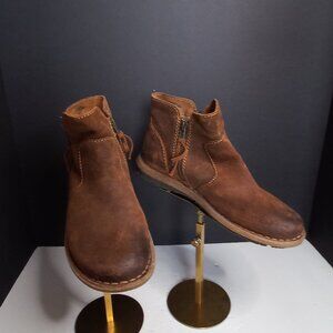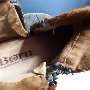 Born Sude Women's Comfort Boots Size 7.5. Used, not new. The toes looking distressed is part of the design, but the shoes do have some minor wear and tear- it does add to the rugged look though. Made in Mexico.