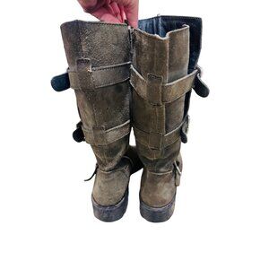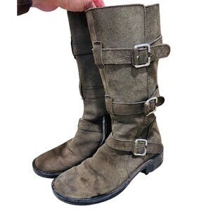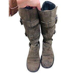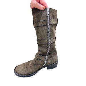 Born Suede Leather Olive Green Knee-High Combat Army Snow Winter Boots 8 Buckle