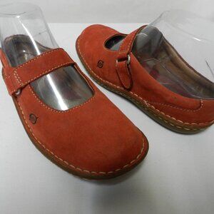 Born Suede leather Mary Jane mules flats slides clogs red Comfort Size Sz 38 7