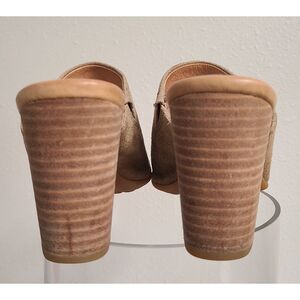 Tan leather suede mule style heeled sandals, US size 7. Heel height: ~ 3"