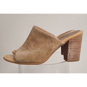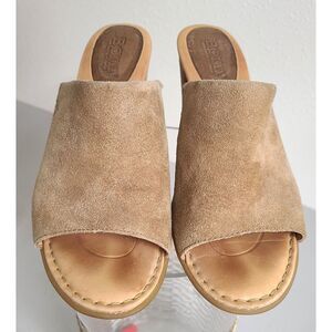 Born Tan Bima Mules Heels Sandals Sz 7 Slip On Open Toe Suede Clogs Quiet Luxury
