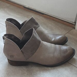 These Born ankle booties in tan offer a sleek and minimalist design. The smooth, matte finish and low heel provide both style and comfort, making them ideal for everyday use. Their modern silhouette ensures they are a versatile addition to any wardrobe.