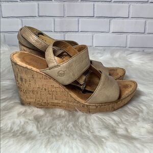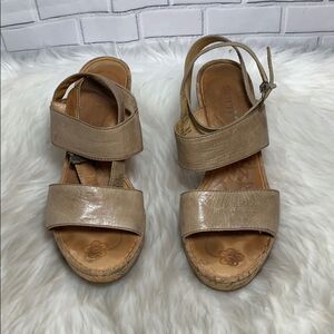 Born Tan Leather Ankle Strap Wedge Sandals Sz 10