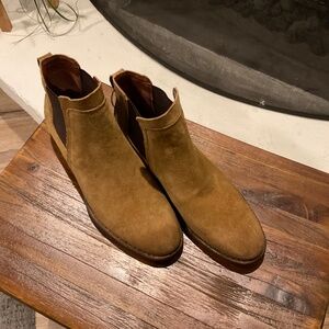 Stylish suede ankle boots. Elastic side panels. Comfortable low heel.