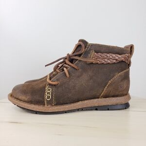 Women's 6.5 Born Tarklin Ankle Booties Distressed Leather Side Zip Straps Granola Gril Bohemian Outdoors Camping