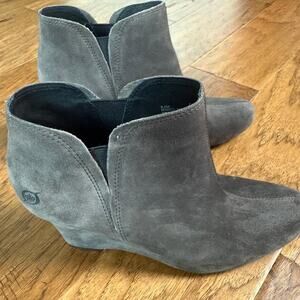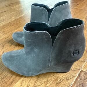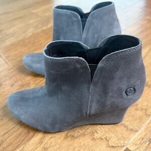 Born Taupe Suede Wedge Ankle Boots Women’s Sz 8.5M Slip-On Crown Logo Ankle Boot
