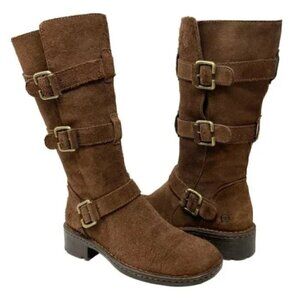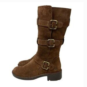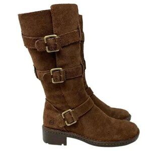 Born Tessa Brown Suede Tipple buckle Straps Moto Boots - Size 6