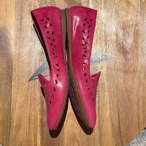Tags: pretty in pink, feminine, Barbie, business casual, office, perforated, flats, soft leather.
