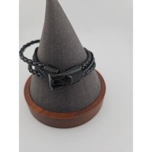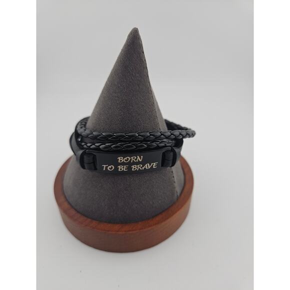 Born To Be Brave Tag Bracelet Black Braded Cord Multistrand Layered Indie Boho