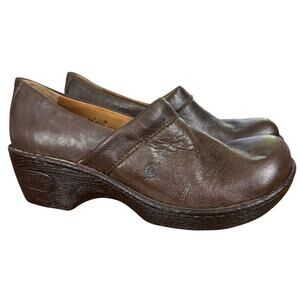 Born Toby Duo Clog Brown Leather Comfort Shoes Womens Slip On sz 8 / 39