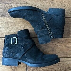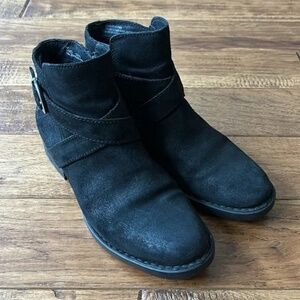 Born Trinculo Leather Ankle Boots Booties Black Buckle Detail Womens Size 7