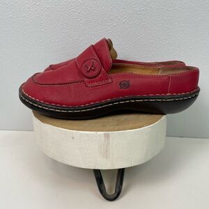 Born Vibrant Red Leather Slip-On Loafers with Moccasin Stitching Size 8 EUC