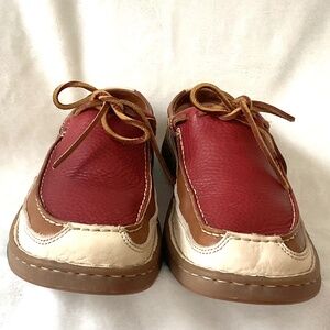 Born Wayz / Børn Men’s Leather Moc-Toe Casual Size 10 M Multi-Tone Red/Tan/Cream