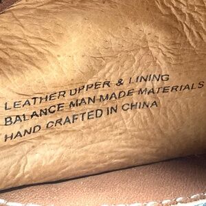 * Distinctive multi-tone leather (deep red vamp, tan mid, cream accent) with hand-stitched moc toe and durable rubber sole.