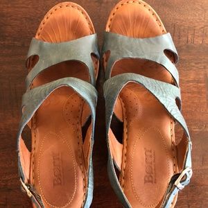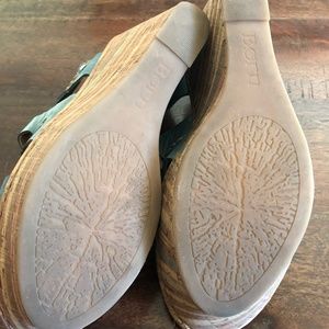 You are going to love these shoes! They're super comfy, and they go with so many things. Gently worn. Genuine leather upper Cork heel.