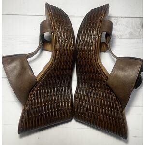 Born Wedge Sandals Womens Size 9 Brown Leather Platform Buckle Woven W82314