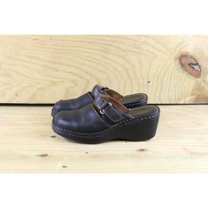 Born Wedge Women's Size 7 Handcrafted Leather Mules Clogs Black Hook and Loop