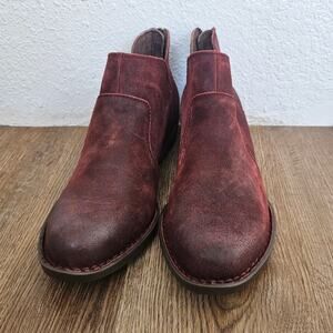 Born Western Inspired Flat Ankle Boots Kerri Dark Red Size 10