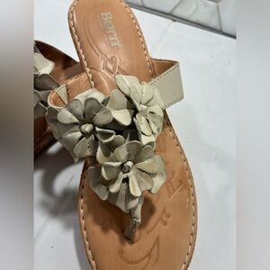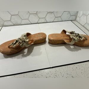 Born Woman’s Kimona Platform Sandals Ivory Flowers Size 8 Hand Crafted Leather