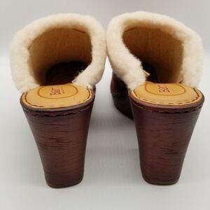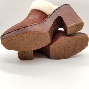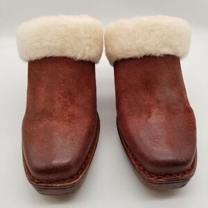Born Women Hope Heeled Clogs Size 11 Red Distressed Leather Shearling Combo