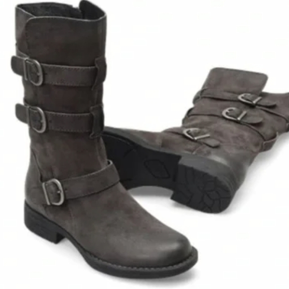 BORN Womens IVY Suede Leather Moto Boots Asfalto Distressed Gray