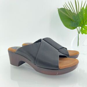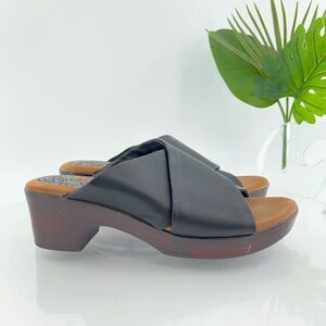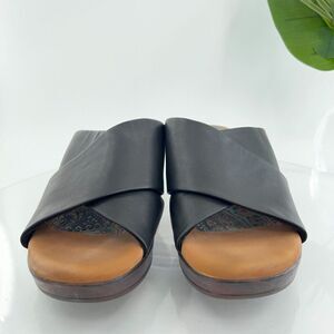 Born Women Jenny Slide Sandal Size 10 Wedge Heel Thong Toe Post Black Vegan Shoe